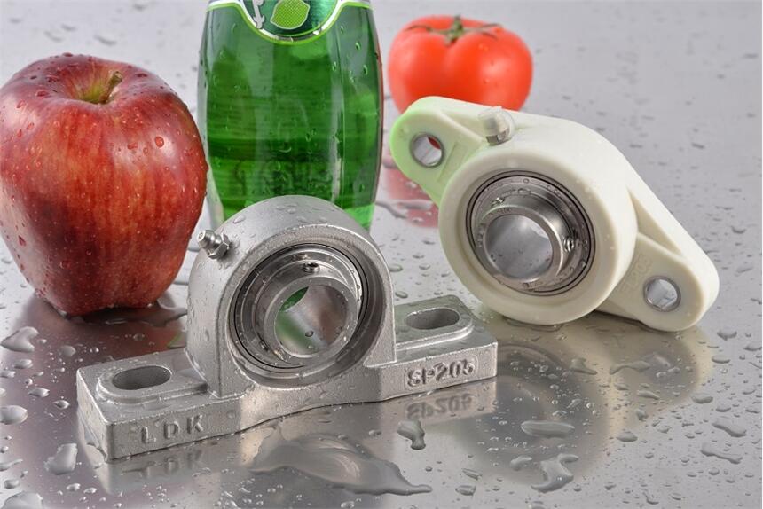 不锈钢轴承,食品级油脂和硅橡胶密封圈,顶丝锁紧方式;