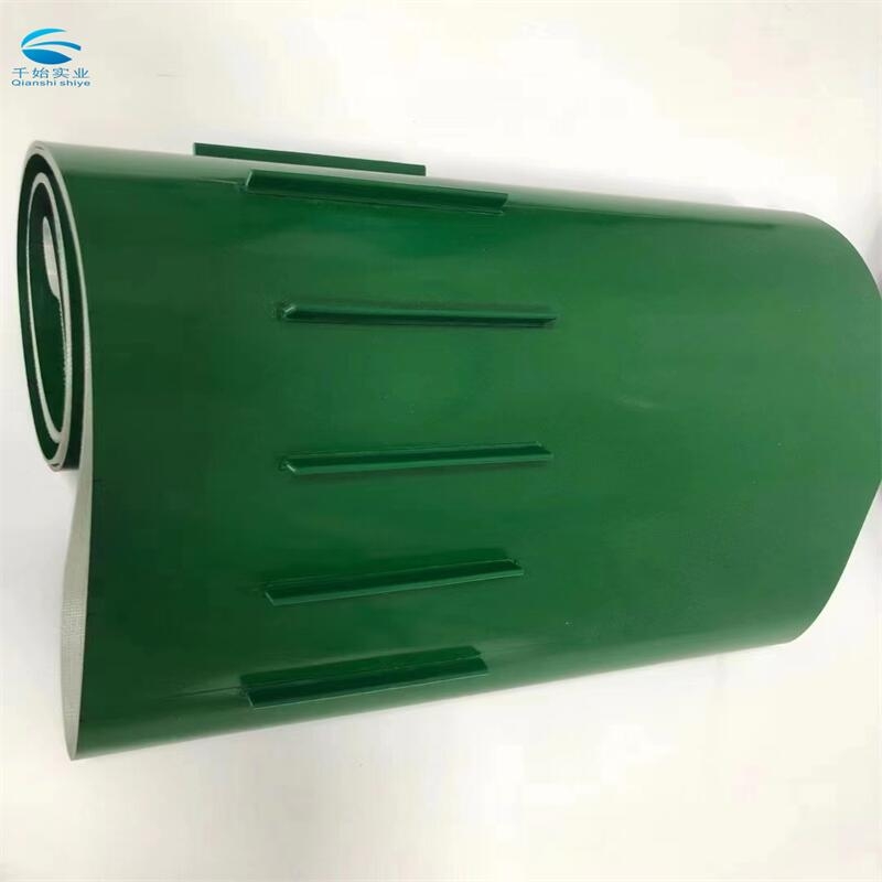我公司裙边挡板导条都有多种规格,在很多情况下,我们需要加装不同高度的不同型号的挡板、裙边,防跑偏导条到皮带上,输送光滑、散装的物料到高处,令物料即使在高角度倾斜也不至于散落,这就是pvc群边挡板提升输送带,pvc挡板输送带,pvc群边输送带,pvc提升输送带主要应用在包装行业,物流行业,电子行业,食品行业,水产品,烟草行业,蔬菜,水果,茶叶,颗粒产品,粉状产品物料的输送,具有良好的效果,既能保证在高坡度的环境中,不至于下滑,散落。我们主要采用机械接头,机械热硫化接驳,直接让群边,挡板,导条与输送带融为一体,更好的利用皮带的特性,对输送带无伤害,使输送带的使用寿命更长。同时经过特殊加工还可做成导向带、提升带、裙边带等。