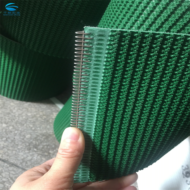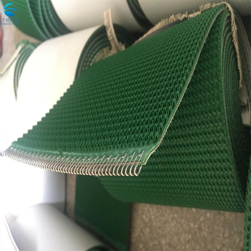 我厂生产各种型号的花纹输送带,花纹种类多达几十种,供您任意选择,保证您在我厂买到称心如意的产品。我公司拥有的花纹pvc输送带是由工作面为花纹状的复盖胶和非工作面为平面的复盖胶与带芯构成的倾角输送带。 花纹输送带特点:适用于倾角为0~40°物料的输送,防止物料下滑。花纹输送带主要有以下种类:草面花纹pvc输送带,鱼骨花纹输送带,菱形格花纹pvc输送带、十字花纹pvc输送带、网眼花纹pvc输送带、倒三角花纹pvc输送带、马蹄花纹pvc输送带、锯齿花纹pvc输送带、小圆点花纹pvc输送带、钻石花纹pvc输送带、蛇皮花纹pvc输送带、布纹pvc输送带、大圆台花纹pvc输送带、波浪花纹pvc输送带、搓板花纹pvc输送带、一字型花纹pvc输送带、细直条花纹pvc输送带、高尔夫花纹pvc输送带、大方格花纹pvc输送带、亚光花纹pvc输送带、粗质地花纹pvc输送带、格子花纹pvc输送带,人字形花纹输送带等各种花纹输送带,花纹输送带,厚度:2mm、3mm、5mm、7mm、8mm、12mm花纹输送带 是由工作面为花纹状的复盖胶和非工作面为平面的复盖胶与带芯构成的倾角输送带。主要采用硬度较小的pvc精密加工在制作,聚酯布层采用pu浸渍处理,具有很强的拉力,耐摩擦而且摩擦系数小,制作轻型爬坡输送带,在较小坡度输送打包好的和散装物品过程中,有很好的效果,主要应用在爬坡输送机,陶瓷打蜡机,机场输送带行李,邮局输送包裹,邮件。厚度大的pvc花纹输送带,应用在大理石,花岗岩,陶瓷的抛光处理,表面有利于在加工过程中快速排出污水,上海千始厂家质优的价格,满意的质量,良好的售货渠道,上海千始包您满意。 我公司在大坡度生产输送物料方面,有独特的设计,我们主要采用在pvc、pu、pe、丁晴橡胶,硅胶输送带上加挡板,加裙边,加导条,我公司裙边挡板导条都有多种规格,在很多情况下,我们需要加装不同高度的不同型号的挡板、裙边,防跑偏导条到皮带上,输送光滑、散装的物料到高处,令物料即使在高角度倾斜也不至于散落,这就是pvc群边挡板提升输送带,pvc挡板输送带,pvc群边输送带,pvc提升输送带主要应用在包装行业,物流行业,电子行业,食品行业,水产品,烟草行业,蔬菜,水果,茶叶,颗粒产品,粉状产品物料的输送,具有良好的效果,既能保证在高坡度的环境中,不至于下滑,散落。我们主要采用机械接头,机械热硫化接驳,直接让群边,挡板,导条与输送带融为一体,更好的利用皮带的特性,对输送带无伤害,使输送带的使用寿命更长。同时经过特殊加工还可做成导向带、提升带、裙边带等。