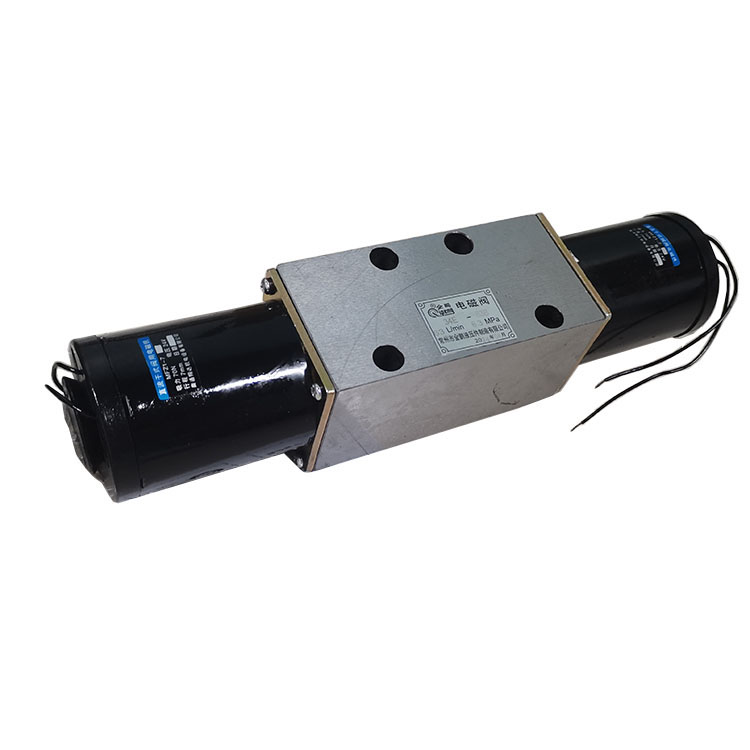 本系列电磁换向阀按电源的不同分为交流、直流二种,交流电磁阀电压为220V,380V,直流电磁阀电压为24伏或110伏。交/直流电磁阀只是电磁铁及推杆不同,阀体结构、原理相同。D2,E2型湿式电磁换向阀属于干式阀的改进型,系将湿式电磁铁衔铁和推杆连成一体,在磁轭和衔铁之间通入压力油,取消了中间动密封,得以有效解决漏油问题,同时也避免了因密封损坏,油温升过高所引起的线圈过热以及冲击震动和噪音等缺点,且电磁铁吸力增加,匹配的复位弹簧刚性增大,极大提高切换可靠性和使用寿命。