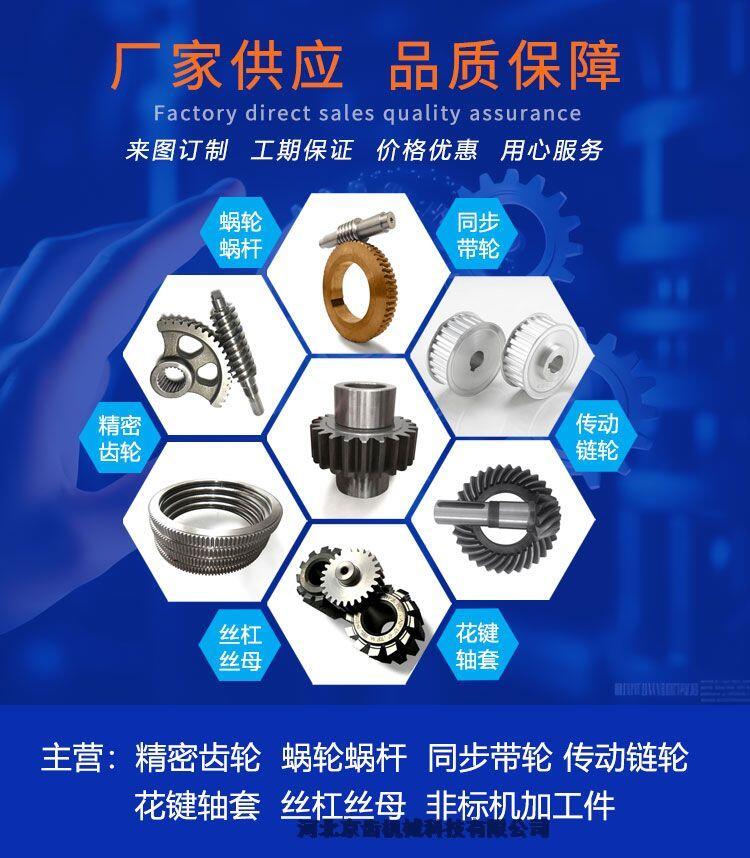 公司经营的产品有:齿轮、齿条、链轮、链条、蜗轮、蜗杆、