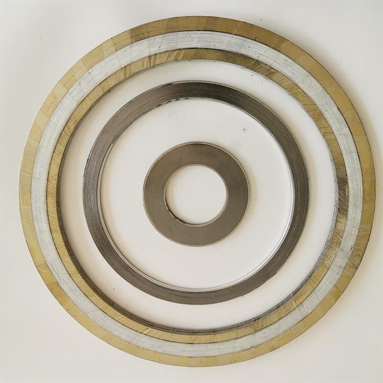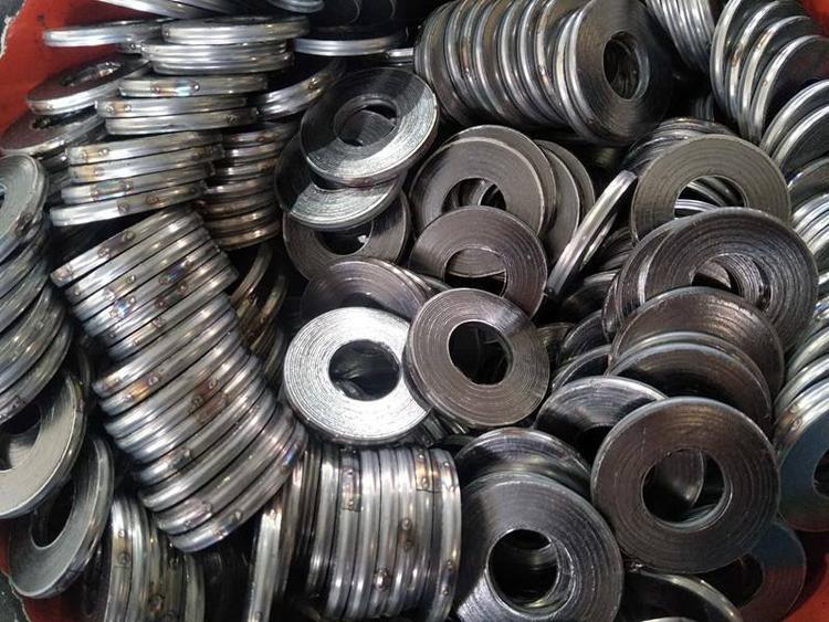 金属缠绕垫片(基本型)采用优质SUS304、SUS316(“V”形或“W”形) 金属带及其它合金材料与温石棉、柔性石墨、聚四氟、非石棉纤维等软性材料相互重叠螺旋缠绕而成,在开始及末端用点焊方式将金属带固定。