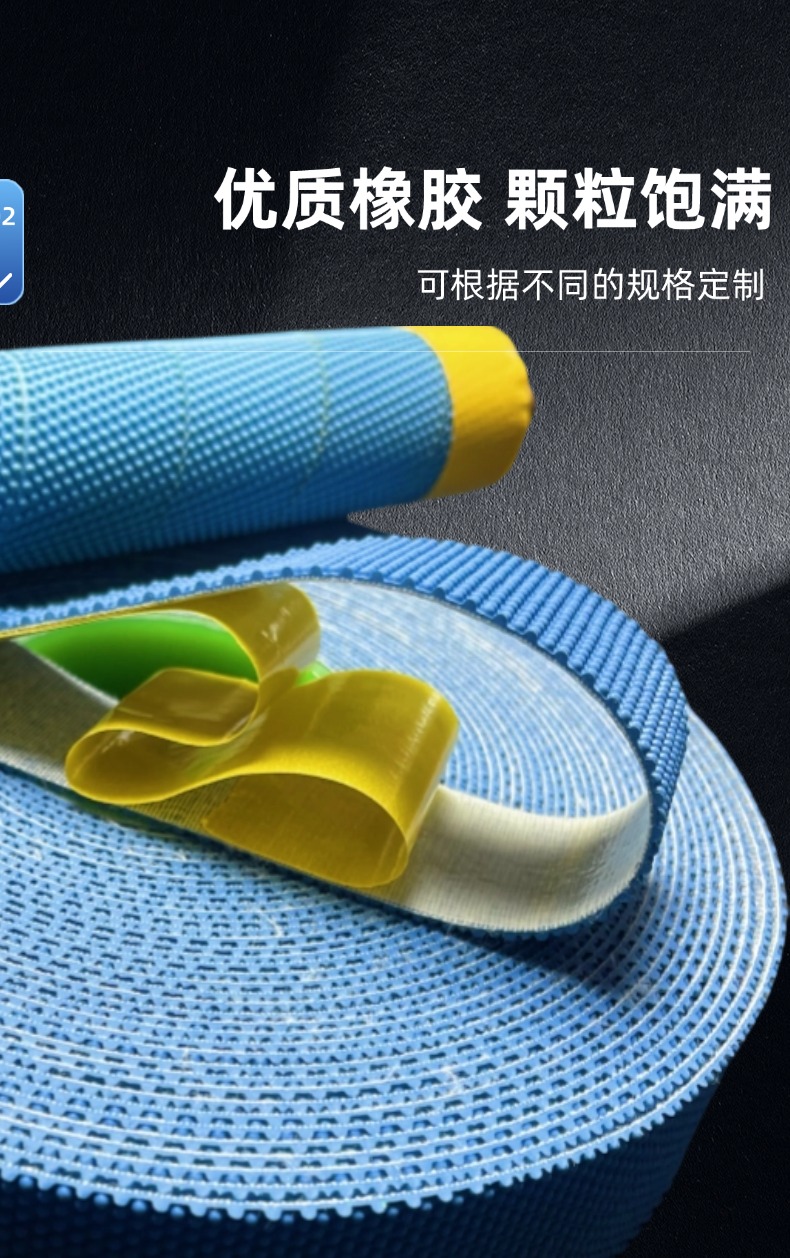 蓝色麻头粒面带背胶橡胶皮粒面防滑带颗粒饱满