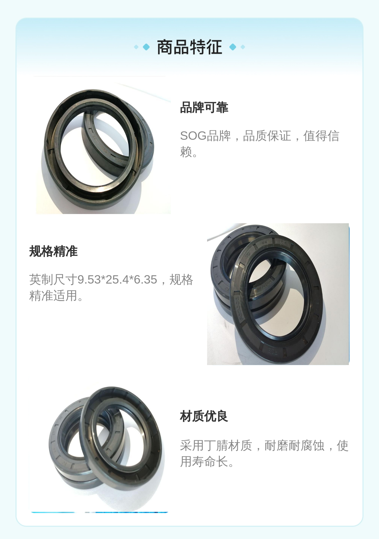 小规格骨架油封SOG品牌SC单唇英制尺寸9.53*25.4*6.35