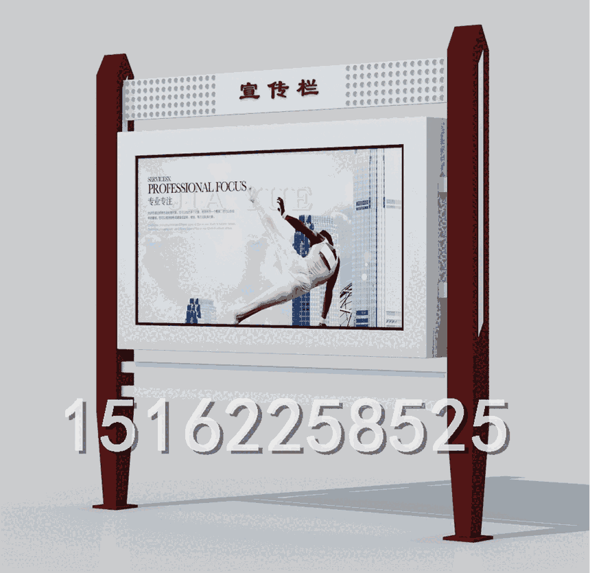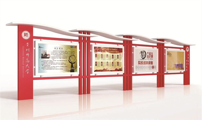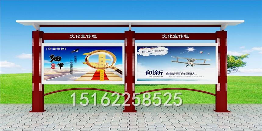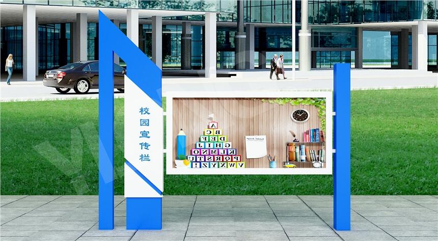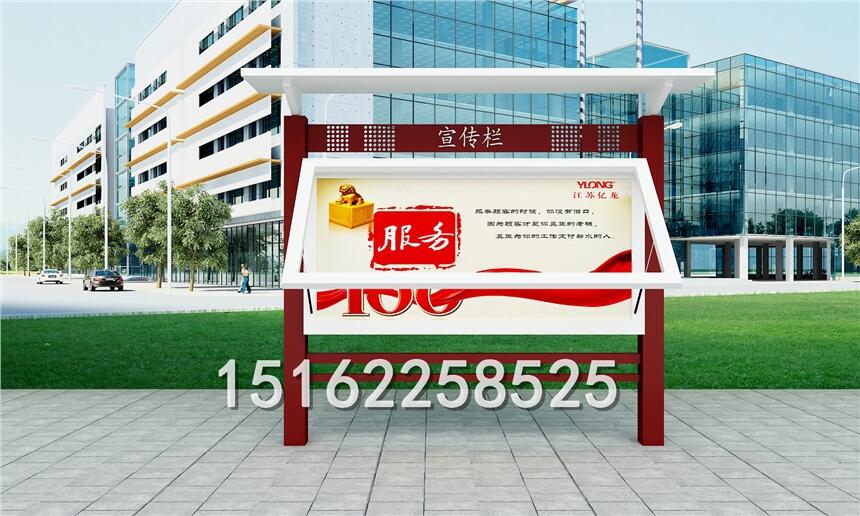 江苏仟誉宣传栏属于VI应用里的一种,是组织或企业单位等进行自我宣传的有效手段。它常被应用于街道,工厂,酒店等公共场所,是企业自我宣传的有利武器。宣传栏一般采用不锈钢为框架,钢化玻璃或者耐力板为面板,铝合金为顶棚,面板可以打开更换宣传画面