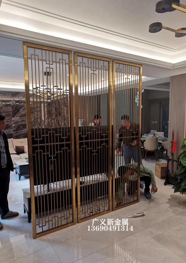 客厅钛金中式不锈钢隔断屏风