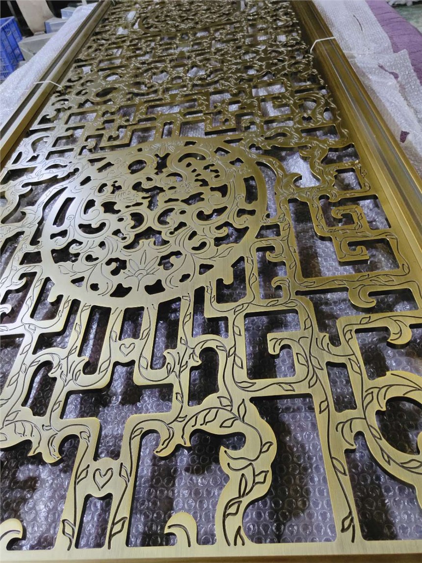 豪华贵气铝艺浮雕屏风仿古铜铝板雕花屏风不仅拥有现在不锈钢装饰流行的元素,仿古铜的颜色既经典又大气,能使整个场所更和谐,更能突显它的风格,豪华贵气铝艺浮雕屏风仿古铜铝板雕花屏风它多借鉴欧式风格中的间欧风格,顾名思义,就是让所有的细节看上去都是非常简洁的。装饰中的简便是让空间和图案看上去非常简洁,大气,且装饰的部位要少。这种装饰风格迎合了现代人们的喜爱,所以多被设计潮流采用。佛山租金属制品厂生产出屏风隔断装饰整体感觉有3D的立体感,体重感起伏感;给你真实最强烈的视觉更是一种享受。让产品更加细腻真实,精确完美。图案生动形象,栩栩如生。给你真实的经典中国风的享受、给你历史沉淀的感叹。本产品款式齐全、匠心独运、造型优美、结构精巧、立体感强、色彩恒久、纹理清晰,巧妙的设计理念把中西式风格完美融合。特别适合用于高档会所、酒店、KTV、办公室、家装、装修装饰和隔断装饰,呈现出怀旧,复古。有雕花、镂空、民族特色风格、现代艺术风格、西式风格、古典艺术风格等。展现出现代装饰家居中时尚风格,在不同空间均可营造出高贵、典雅、温馨的效果。它,以青古铜、黄古铜、红古铜为主色调深浅颜色一切从个人爱好选择。铝型产品质量较轻、高硬度、抗氧化、安装方便,展现出在五金金属类的强势。可根据客户的要求来,提供尺寸、图纸订做。豪华贵气铝艺浮雕屏风仿古铜铝板雕花屏风。
