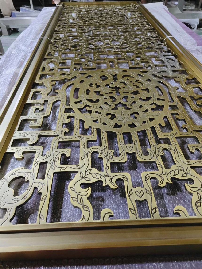 豪华贵气铝艺浮雕屏风仿古铜铝板雕花屏风