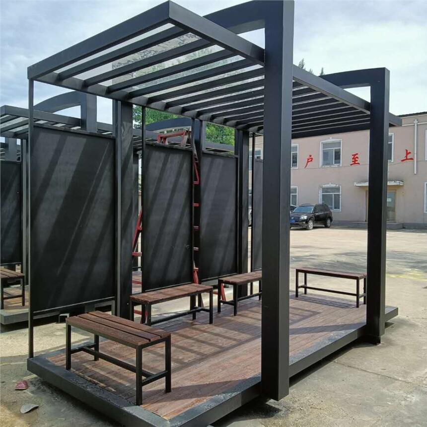 不锈钢岗亭厂家,用料说明: (1)立柱:采用80*80*1.5不锈钢立柱 (2)框架:用45*75*1.2mm不锈钢管,不锈钢门,不锈钢窗5+5+5中空玻璃 (3)屋面:用不锈钢1.0mm焊接而成,中性胶密封 (4)室内吊顶:豪华pvc吊顶,内有工作台面 (5)墙体用铝塑板+挤塑板+木工板 (6)底板用铁方通做基础,铺设2.0mm防滑钢板,上铺豪华复合地板 (7)岗亭焊接缝采用中性耐候胶密封,减少漏雨和渗水 (8)内配置:照明灯具,电源插座,漏电保护开关,空调主架