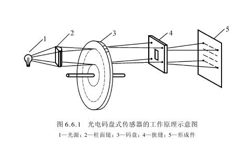 测量角位移的数字编码器。它具有分辨能力强、测量精度高和工作可靠等优点,是测量轴转角位置的一种最常用的位移传感器。 码盘(光栅盘)是在一定直径的圆板上,等分地开通若干个长方形孔。由于光电码盘与电动机同轴,电动机旋转时,码盘(光栅盘)与电动机同速旋转,经发光二极管等电子元件组成的检测装置检测输出若干脉冲信号,通过计算每秒光电编码器输出脉冲的个数就能反映当前电动机的转速。(如下图) ![]() |