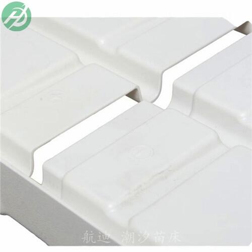 潮汐式灌溉盘材质均为食用级别ABS原料,颜色为亮灰色面板厚度为3mm,板材工艺高温电吸塑而成可分为两种,一种为固定板,尺寸固定的单张盘;一种为拼接板,长度可随意拼接,最长可达42米。拼接潮汐面板的规格弥补了市场上面苗床面板固定尺寸一成不变的难题,解决了一台苗床多个上下水阀门和进出口的弊端,长度将不再受限制。这种苗床灌溉时,苗盘内注满清水或营养液,并使其滞留一定的时间,以使作物依靠毛细作用通过花盆底部的排水孔吸收水分。之后灌溉水排出栽培床,或收集再利用,或直接排到当地的下水管道。