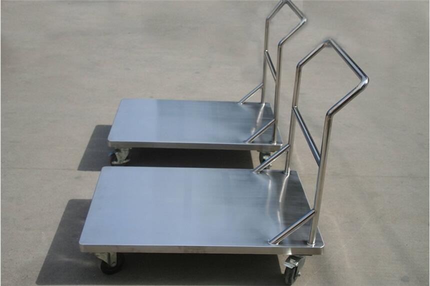 天津不锈钢手推车 食品厂用不锈钢手推车 带护栏不锈钢手推车-华奥西
