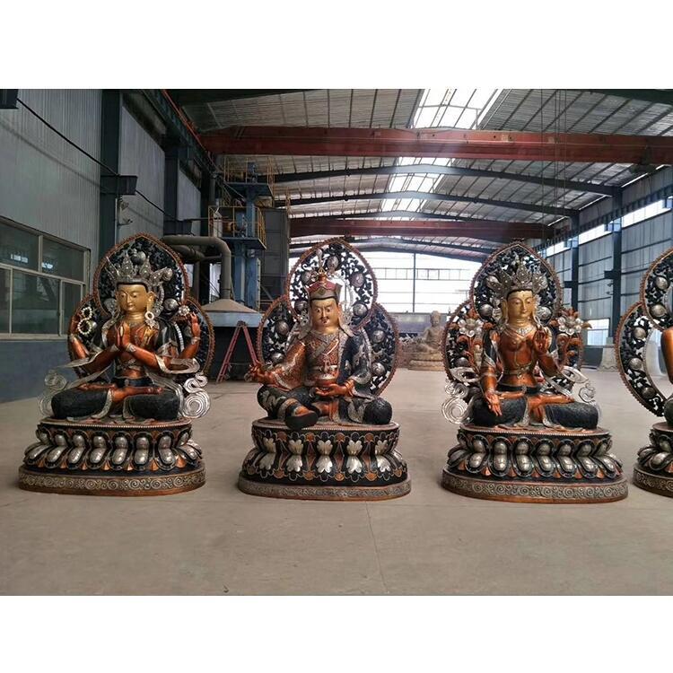 三宝佛铜雕塑佛像定制 铜雕藏佛雕塑佛像厂家