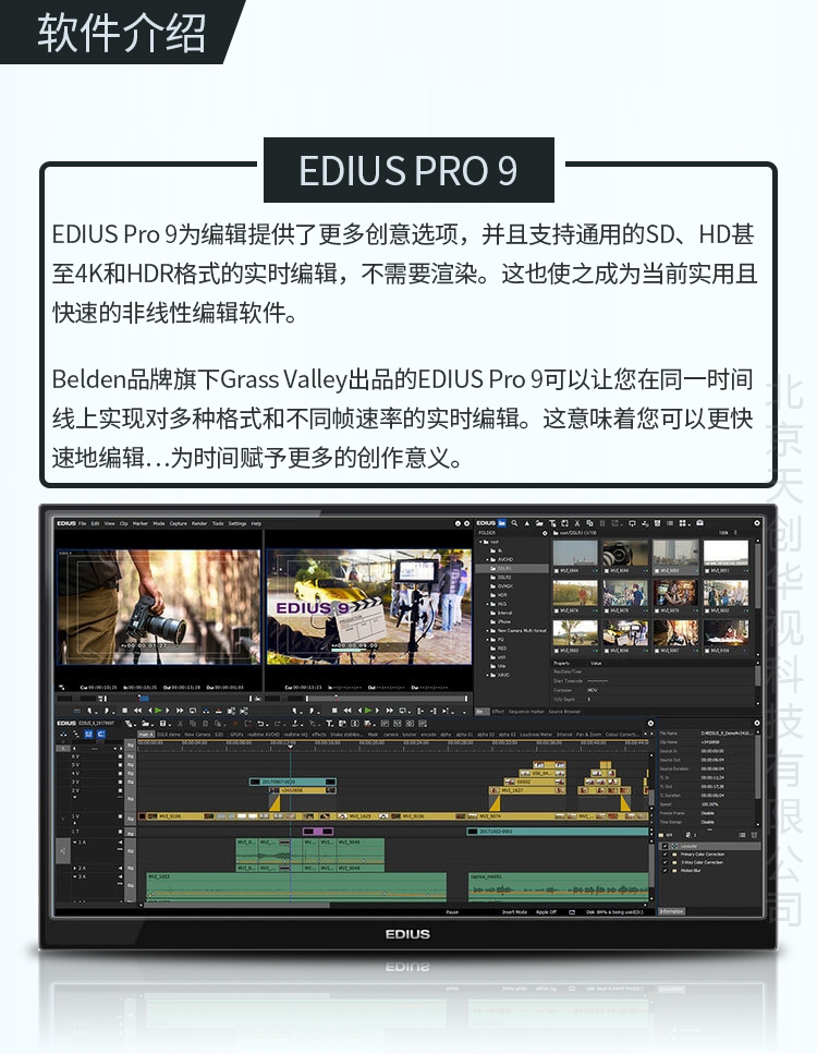 专门为你们打造的TC STUDIO,一套剪辑、调色、三维制作的非编设备。TC STUDIO非编系统在稳定性、多文件格式支持性、4K、高、标清混合编辑的实时性、对新记录介质的兼容性上都表现了良好的性能,是理想的新闻、专题片、宣传片后期制作平台,集、4K、高、标清视频编辑、高清蓝光影碟发布于一体的非线性编辑系统。可满足电*台、高等教育机构、企事业单位、视频网站,多种制作及发布的需要