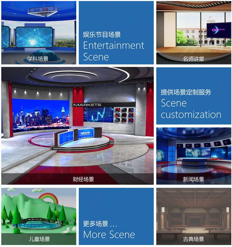 VSM虚拟演播室系统适用于任何场景,例如:演播室节目、文艺晚会、重大活动、校园电*台、精品课程、远程教育、开学典礼、运动会、学术交流、远程教学、电子竞技、大型会议、产品发布等等。