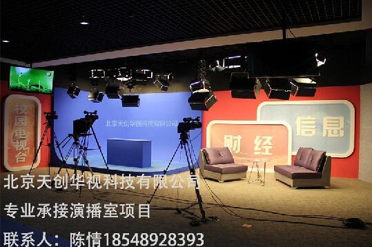 北京天创华视专业从事演播室建设装修,施工,建设.电话:承包演播室装修,机房建设,录课教室,会议演播室,企业电视台