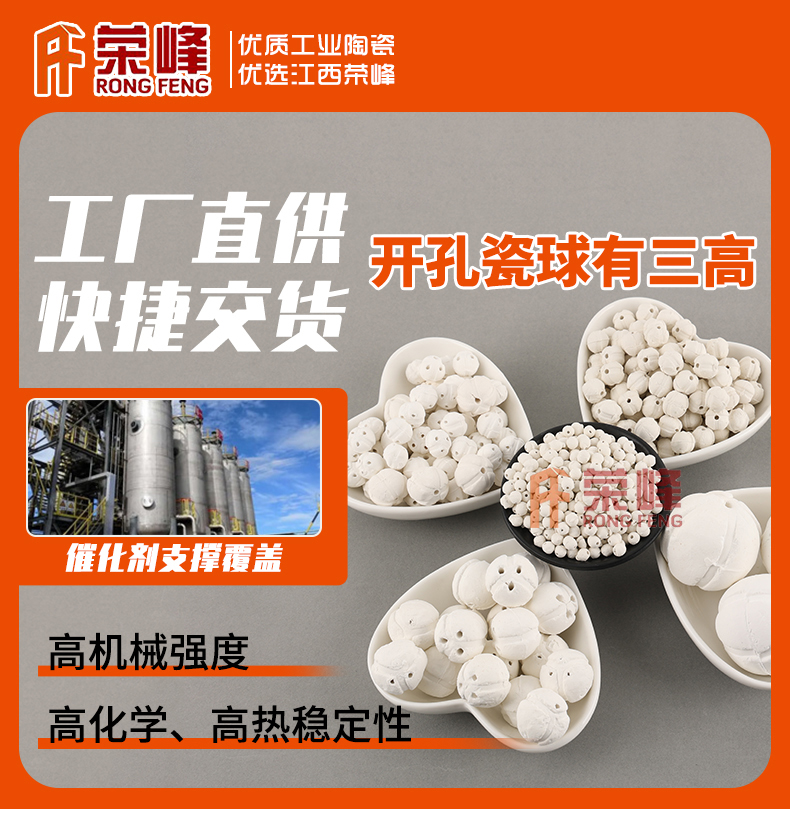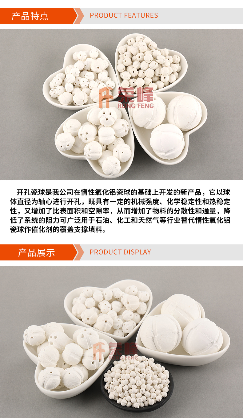 氧化铝开孔瓷球填料多规格惰性瓷球支撑覆盖多孔陶瓷球填料厂家