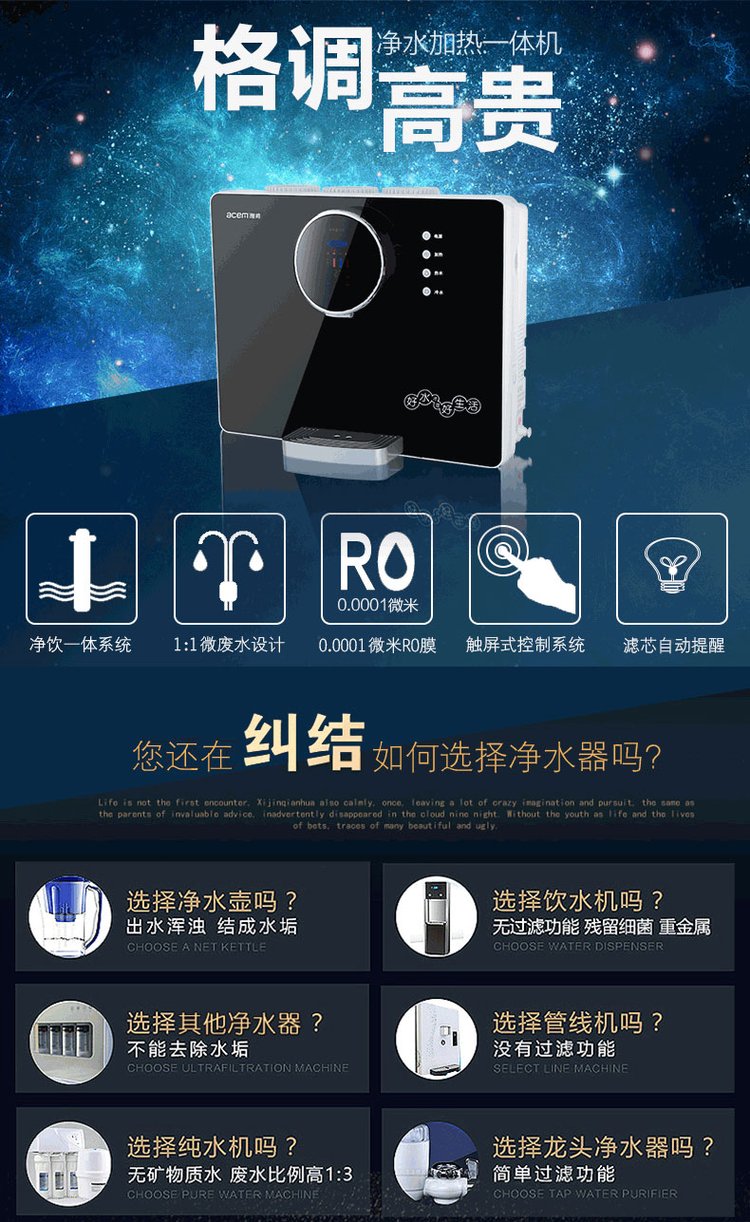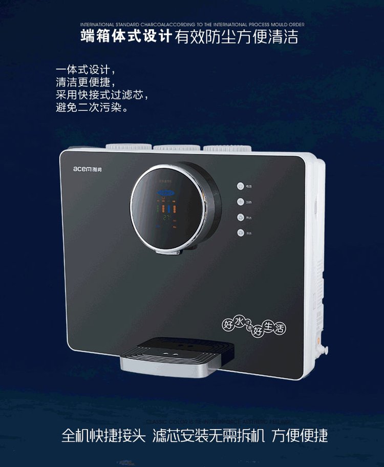 黑色高端触屏加热一体机反渗透纯水机城市建材家居款