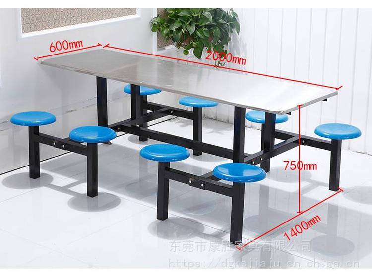 ?工厂饭堂餐桌椅健康环保, 耐脏,易清洗,结实牢固, 等优点,桌面采用不锈钢材质,不锈钢在常温下,始终保持着本身的色调,经过多次加工打磨处理,更加平整光滑,使用工舒适,整洁卫生, 不生锈,坚固