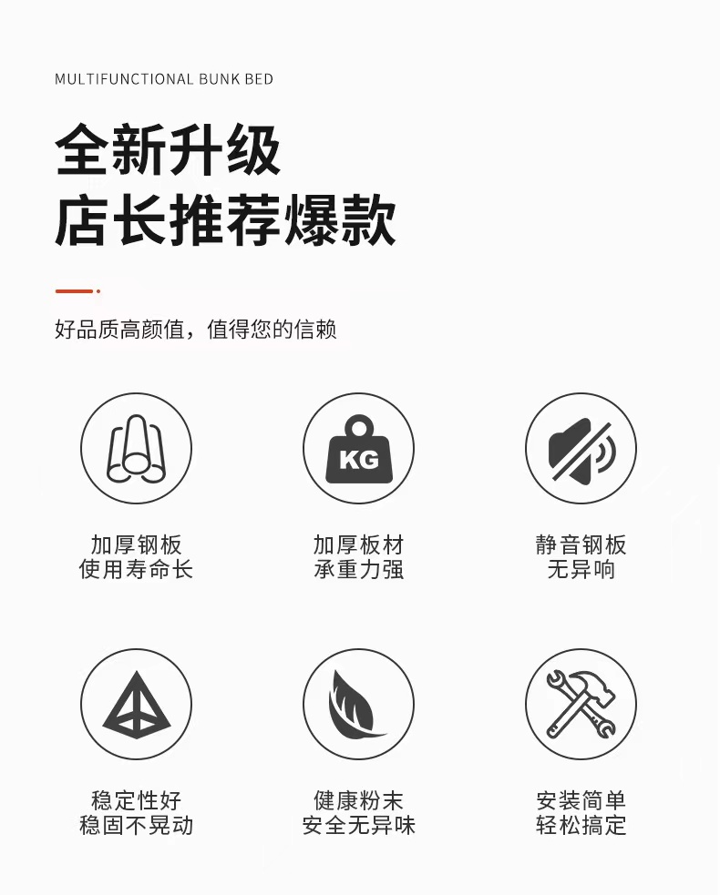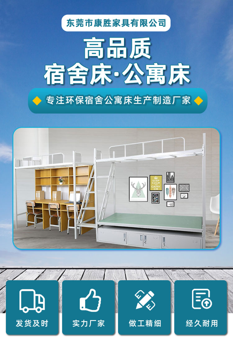 康胜学生宿舍用双层床加厚方管灰白摇不动插销结构KS上下铺铁床