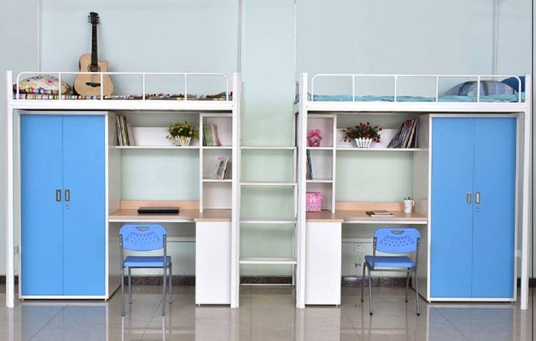 成人公寓床卡扣好安装,公寓床连体踏板高校公寓床,康胜批发成人公寓床含有床板,公寓床连体式踏板,上下床不勾脚,安全又方便,高校公寓床适用于2人,配有床板和书桌书架等,由于公寓床是立体空间组合,不仅可以节省宿舍的空间,并使宿舍整齐而美丽。