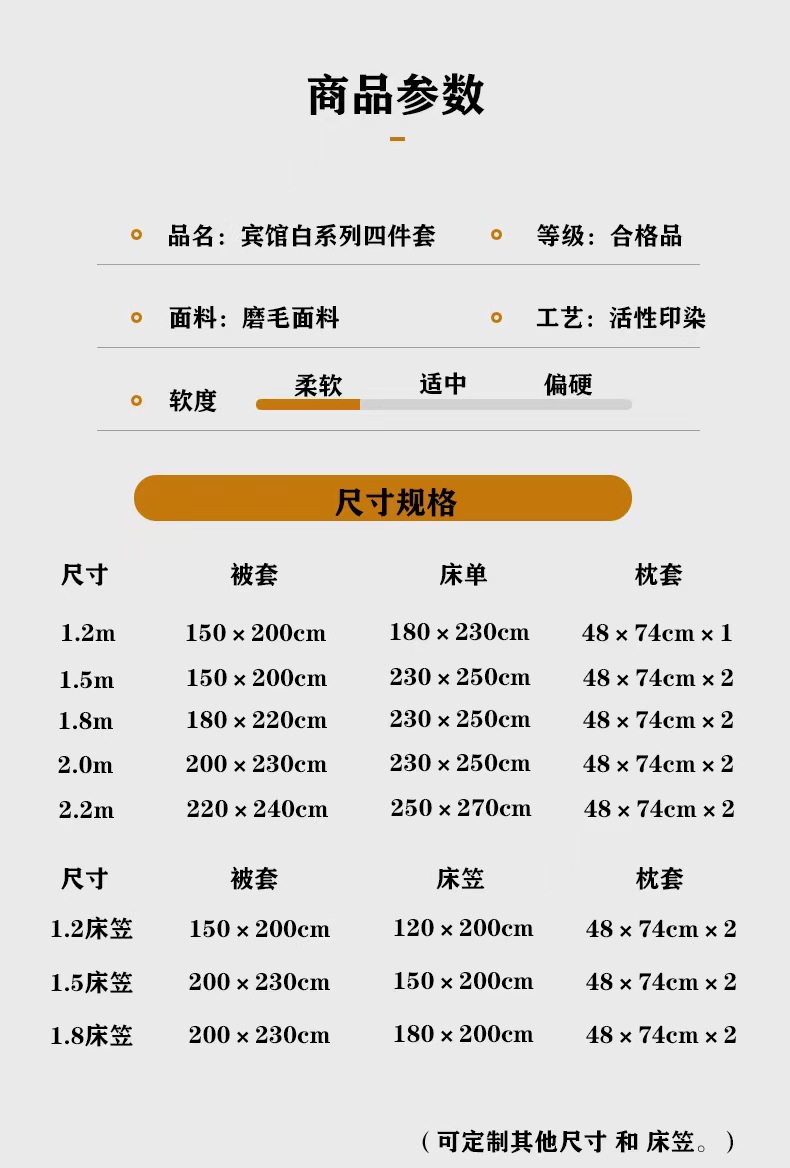 莫凡酒店客房四件套宾馆民宿纯棉全棉床单被套布草白色床品全套装