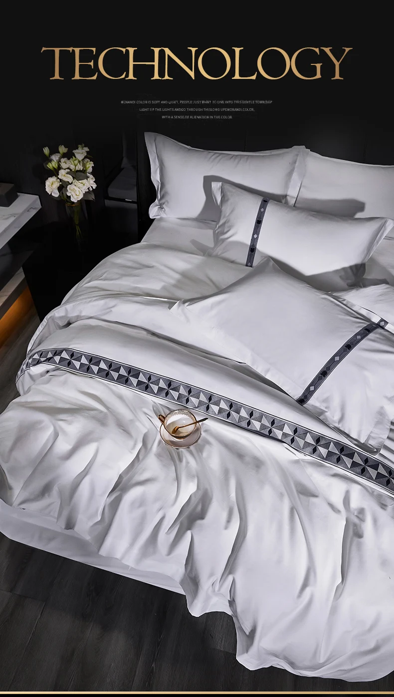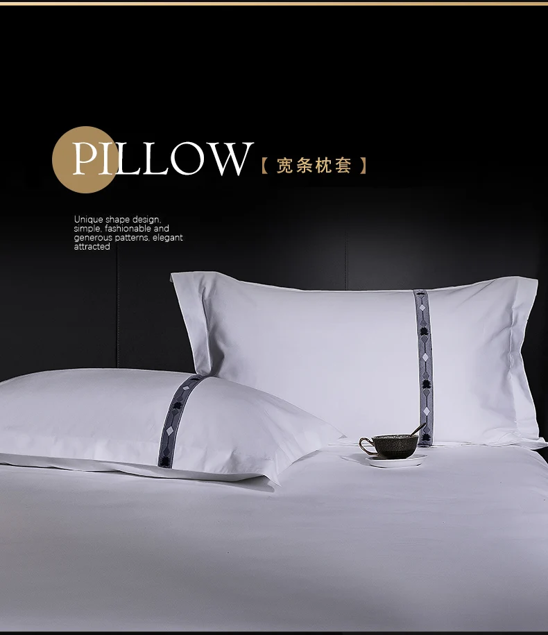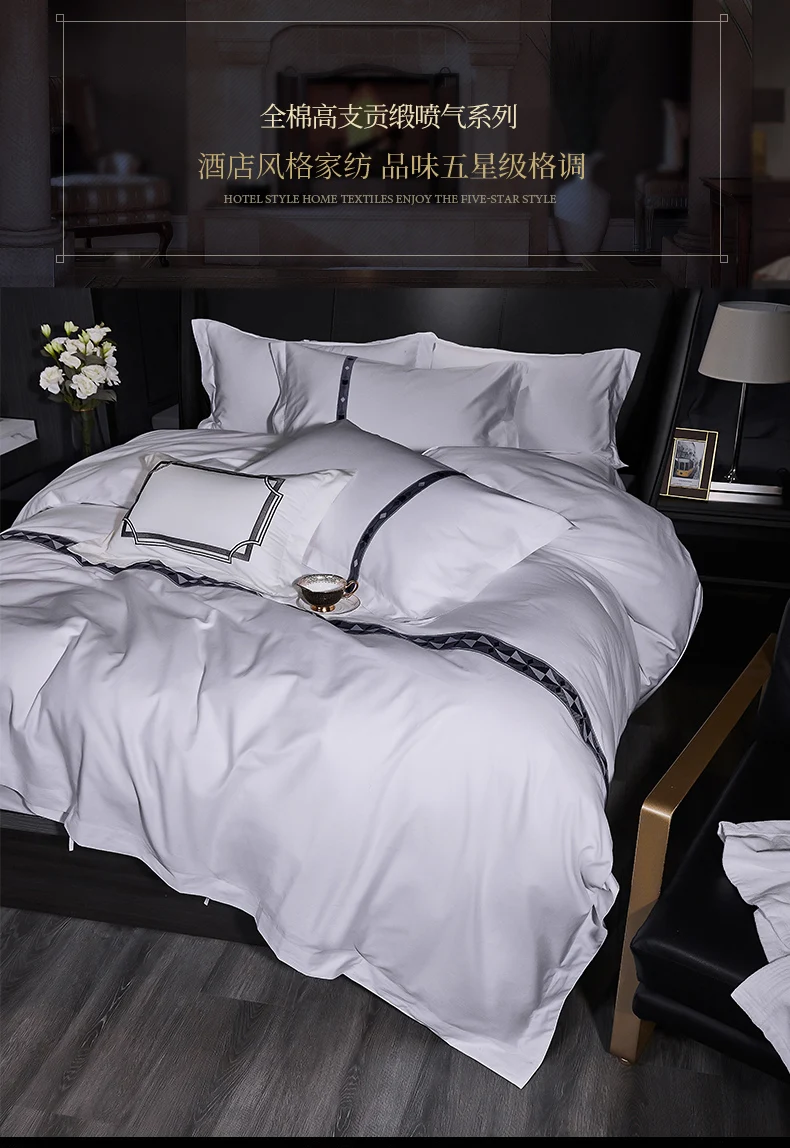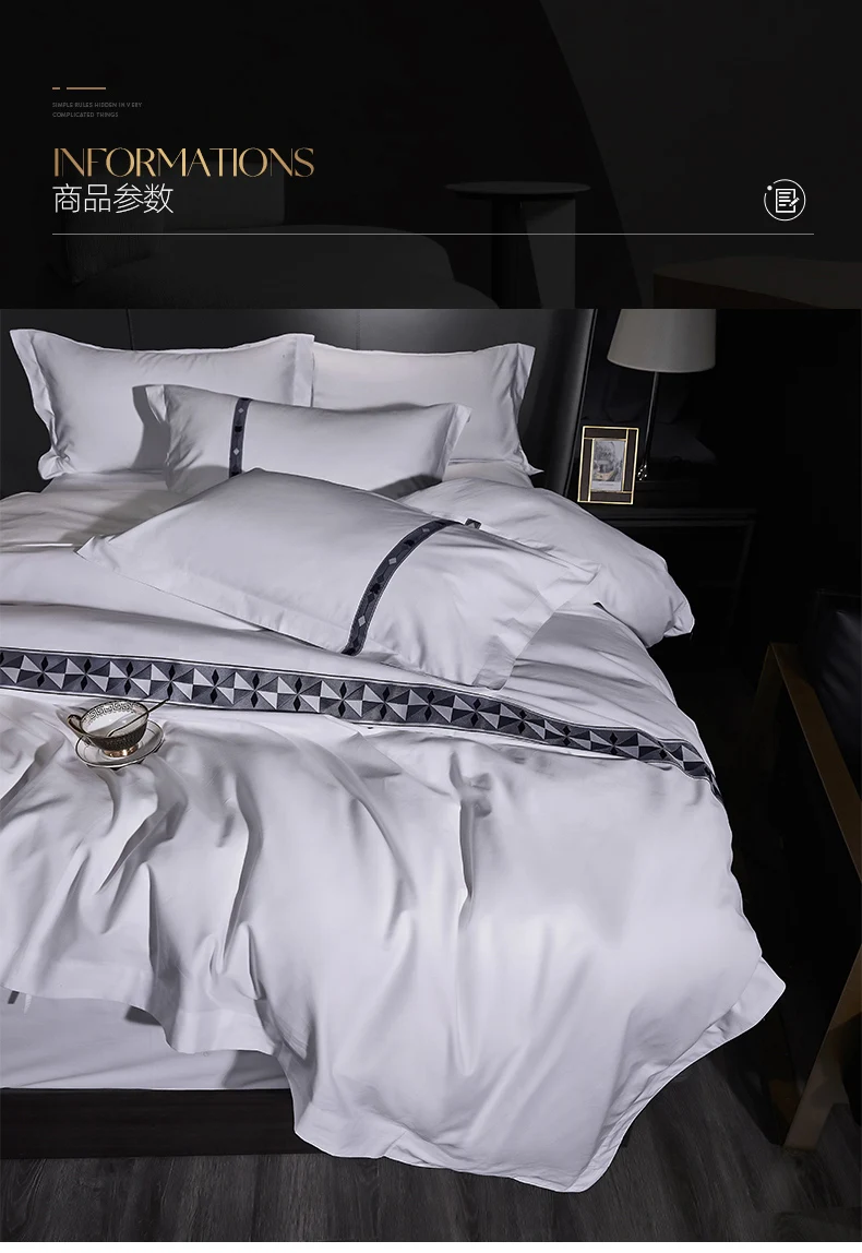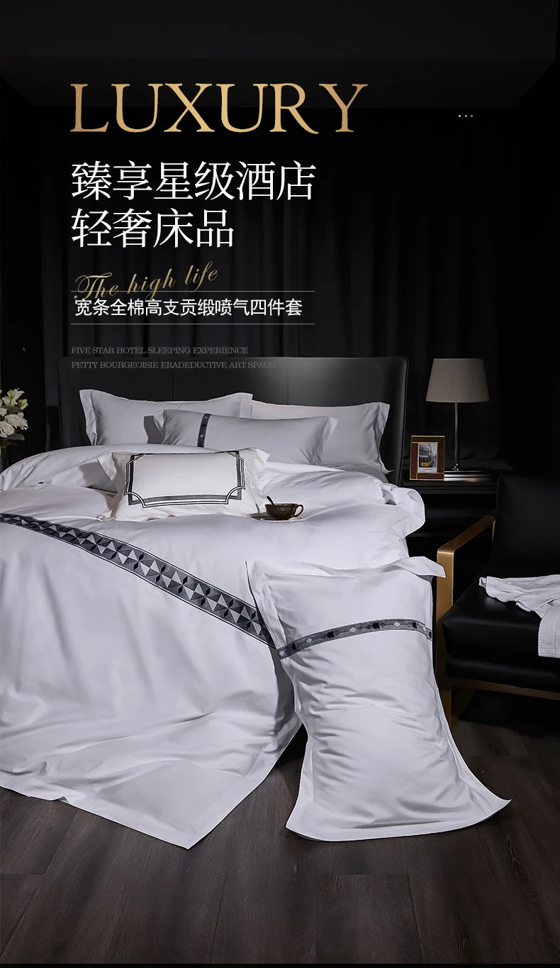 莫凡白色套件床上用品全棉宽条60s贡缎喷气四件套酒店宾馆布草