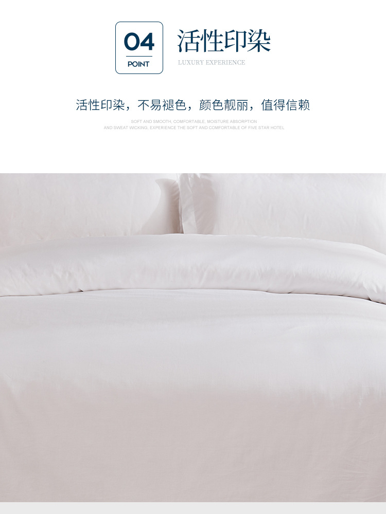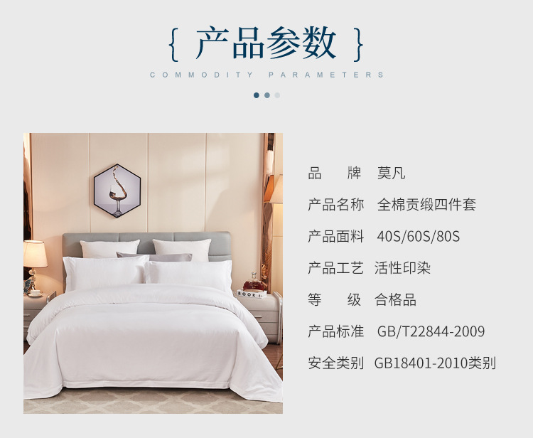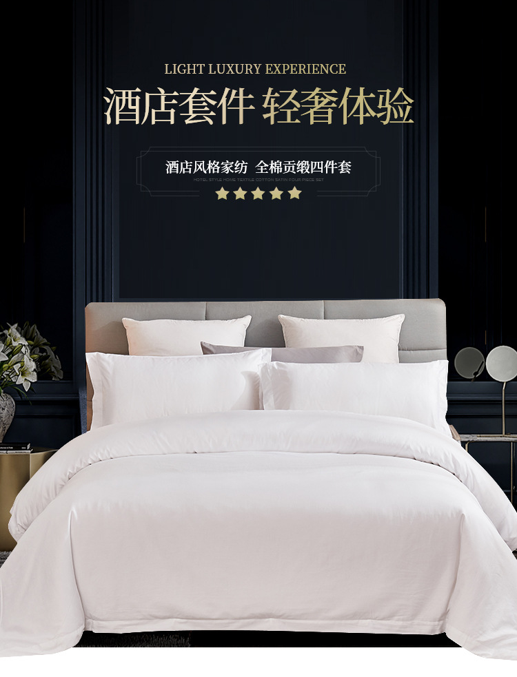 莫凡白色60支全棉贡缎酒店布草四件套定制宾馆简约床上用品套装
