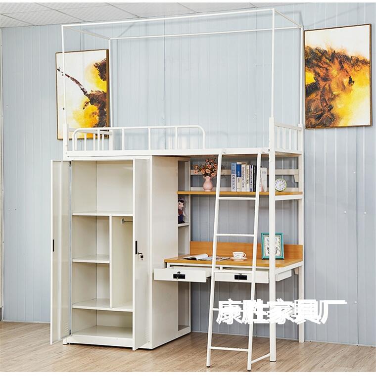 上下公寓床2022年新款,康胜批发学生宿舍组合床带书桌衣柜,分层收纳,省空间,将空间合理最 大化使用,这款上下公寓床简约风格,适合各种学校宿舍,或工厂宿舍,表面光滑硬度高,且不易生锈,全卡扣式安装,用的越久,卡的越紧越牢固,没有噪音,睡觉踏实更放心。