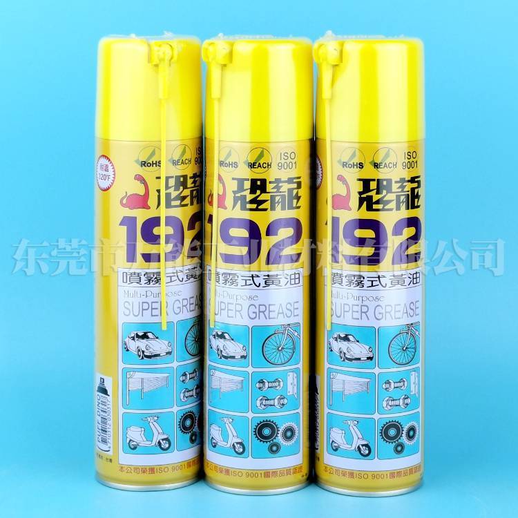 ?恐龙192喷雾式黄油适用于工业机器、汽机车、电卷门 机械仪器、脚踏车、缝纫机、除草机、门窗绞縺、钓具、游艇各种机械。