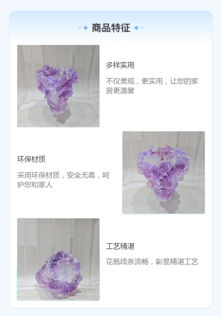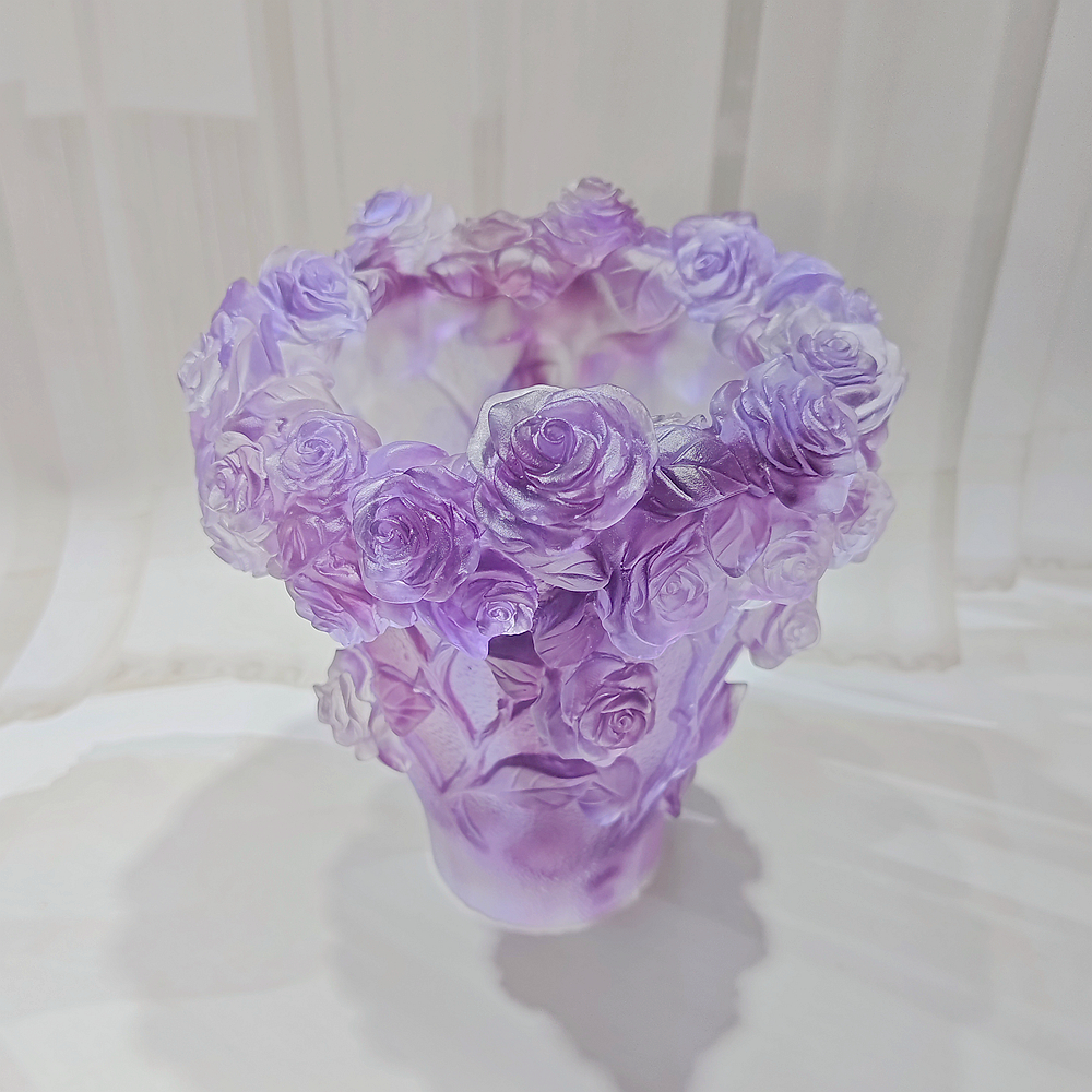 定制紫色玫瑰造型琉璃花瓶古法琉璃脱蜡烧制家居装饰商务礼品摆件