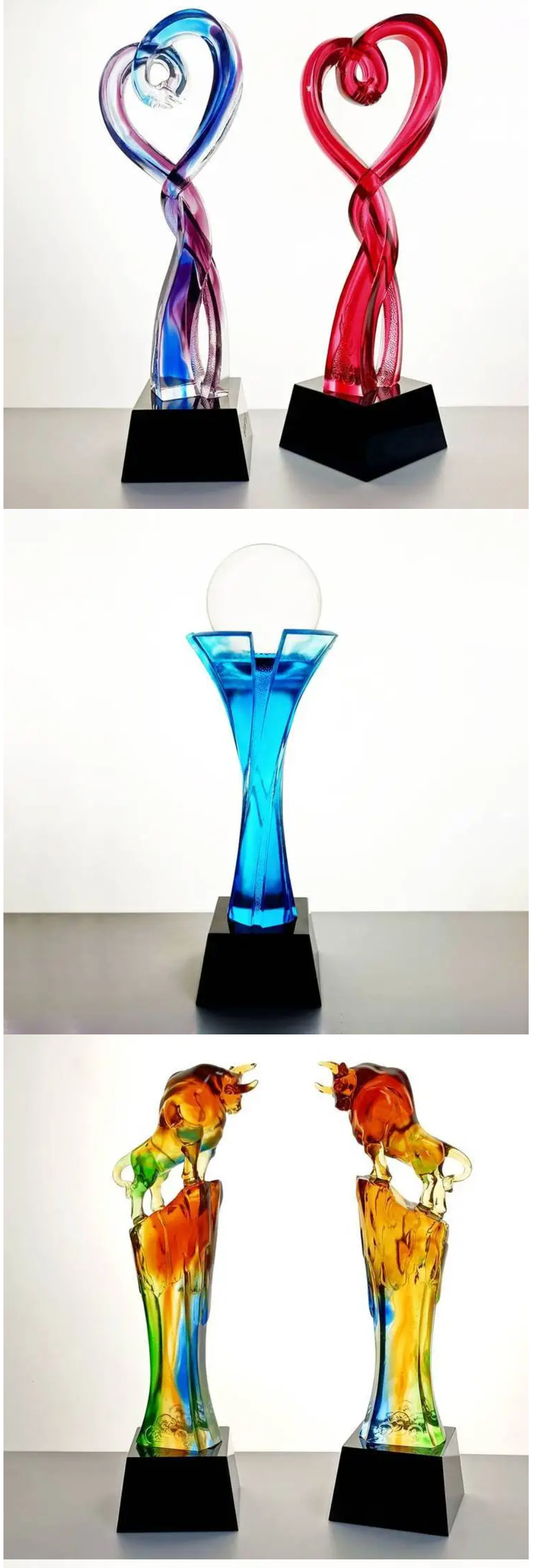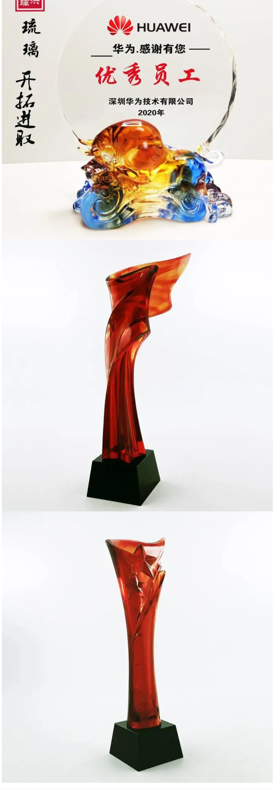 定制凤凰琉璃奖杯年度女神评选奖座古法琉璃红色凤凰奖年会纪念品