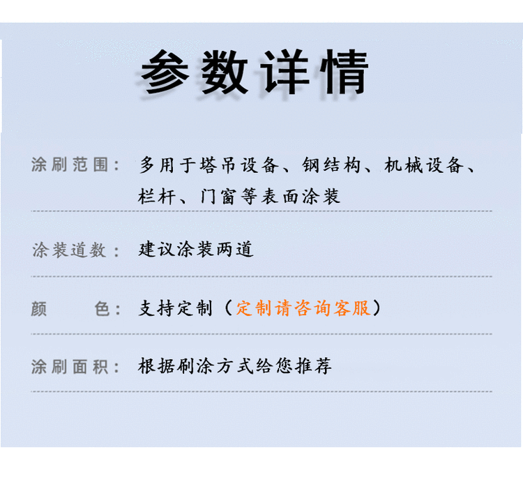 用途范围 | 机械设备、钢结构、金属、门窗、栏杆 | ||