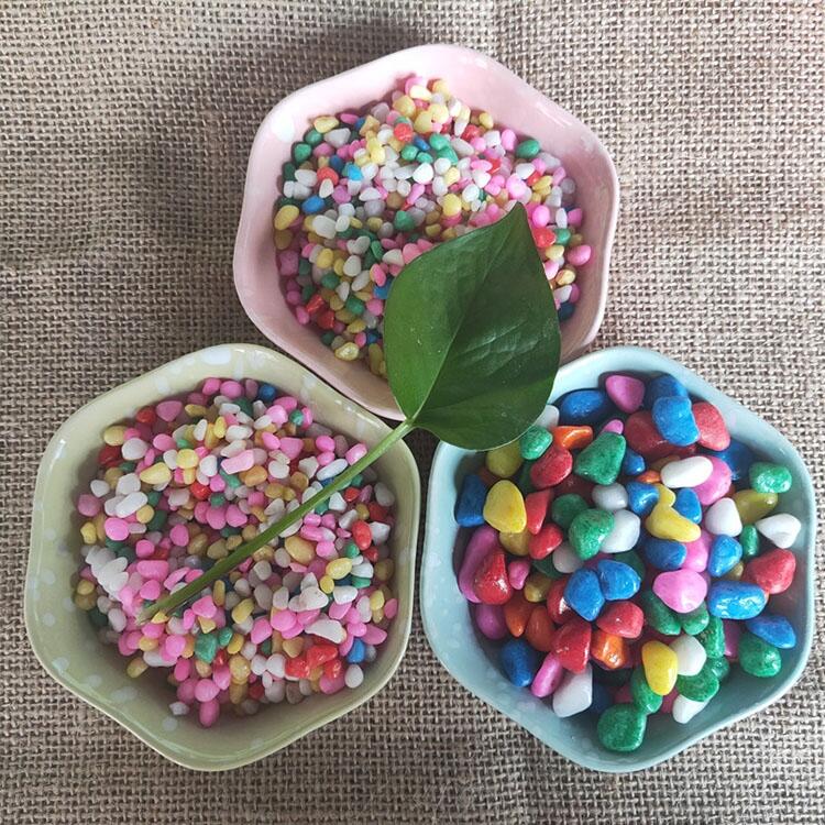 人工染色彩石防晒不掉色,染色彩石是用精选石英砂经多道工序磨圆处理,使颗粒浑圆之后,再经化学处理高温烧结而成。染色彩石弥补了天然石材的色彩不鲜艳及色彩品种少等缺点,色彩牢固、耐久。彩色颗料经多级筛选,从而保证级配均匀,增大堆积密实度,抗重压。