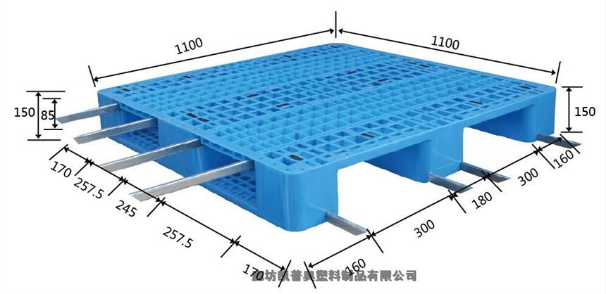 塑料托盘上承载的货物成千上万种,纯塑料托盘表面比较光滑,塑料材质本身不防滑,如果上面所装载的货物也很光滑,那么很容易出现货物洒落情况的出现,所以我们公司的托盘在出厂时一般装有橡胶防滑垫,生产时和托盘融为一体非常牢固,对于货物的防滑和固定起到了很大作用,同时在进插口托盘下面也配有防滑垫,也就是叉车腿和塑料托盘接触的部分,特别是在一些下完雨或使用环境潮湿的环境下,和金属叉车腿之间极易打滑,加入橡胶防滑垫后可有效避免托盘从叉车腿上滑落情况的出现。