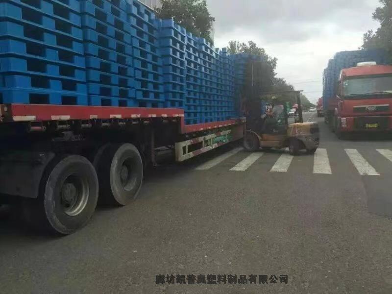 塑料托盘上承载的货物成千上万种,纯塑料托盘表面比较光滑,塑料材质本身不防滑,如果上面所装载的货物也很光滑,那么很容易出现货物洒落情况的出现,所以我们公司的托盘在出厂时一般装有橡胶防滑垫,生产时和托盘融为一体非常牢固,对于货物的防滑和固定起到了很大作用,同时在进插口托盘下面也配有防滑垫,也就是叉车腿和塑料托盘接触的部分,特别是在一些下完雨或使用环境潮湿的环境下,和金属叉车腿之间极易打滑,加入橡胶防滑垫后可有效避免托盘从叉车腿上滑落情况的出现。