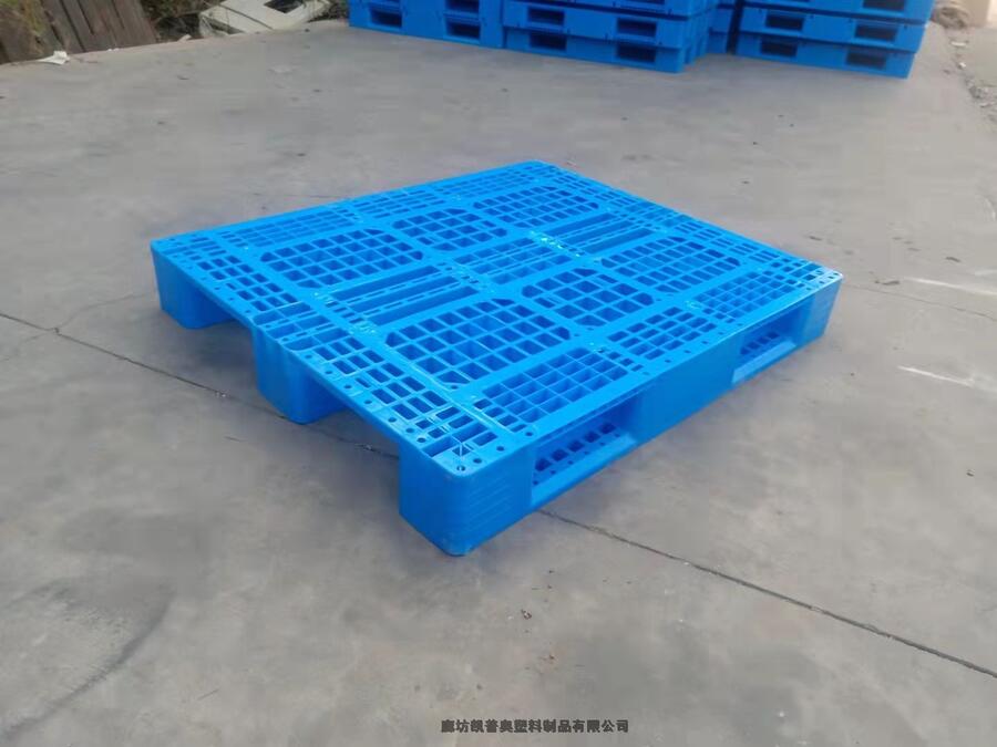 根据调查发现目前流通中的塑料托盘规格比较多。规格包括:1200x1000mm;1300x1100mm;1400x1100mm;1400x1200mm;1300x1000mm;1200x800mm;1200x1100mm;1100x1000mm;1100x1100mm;1100x900mm;1000x1000mm;1000x800mm;1200x1200mm 等几十种规格。其中相对比较集中的主要是1100x1100mm和1200x1000mm,约占塑料托盘的50%左右。塑料托盘生产中要使用注塑模具,而模具开发成本相对比较高。木质托盘的规格比较混,目前的规格主要是使用单位根据自己产品的规格定制,这与木质托盘制造工艺相对比较简单有关。钢制托盘的规格不是很多,集中在二至三个规格,主要用于港口码头等单位,它对于托盘的承载重量要求比较高。另外在调查中还发现,现在企业使用的托盘多为平面四向进叉双面,约占托盘使用总数的60%左右。其余的还有平面双向进叉双面使用托盘、单面用平式托盘、箱式托盘和柱式托盘。特种托盘的使用数量比较少。箱式托盘现多用于企业生产过程中的物料搬运,基本上不进入流通。塑料托盘价格较低,使用寿命长,耐酸碱耐腐蚀、防霉变等特点在各种托盘中塑料托盘以其超高的性价比颇受各行业的青睐。