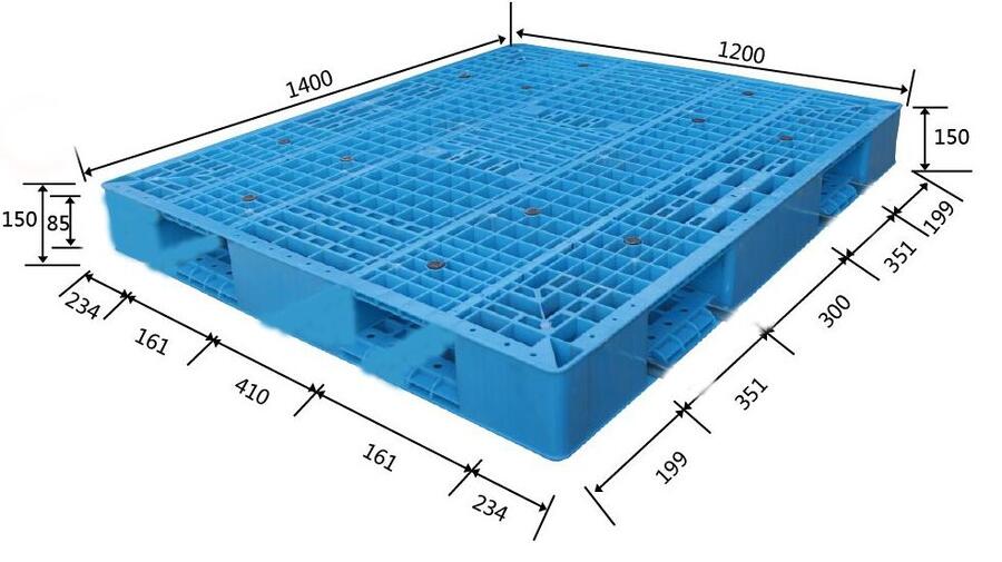 根据调查发现目前流通中的塑料托盘规格比较多。规格包括:1200x1000mm;1300x1100mm;1400x1100mm;1400x1200mm;1300x1000mm;1200x800mm;1200x1100mm;1100x1000mm;1100x1100mm;1100x900mm;1000x1000mm;1000x800mm;1200x1200mm 等几十种规格。其中相对比较集中的主要是1100x1100mm和1200x1000mm,约占塑料托盘的50%左右。塑料托盘生产中要使用注塑模具,而模具开发成本相对比较高。木质托盘的规格比较混,目前的规格主要是使用单位根据自己产品的规格定制,这与木质托盘制造工艺相对比较简单有关。钢制托盘的规格不是很多,集中在二至三个规格,主要用于港口码头等单位,它对于托盘的承载重量要求比较高。另外在调查中还发现,现在企业使用的托盘多为平面四向进叉双面,约占托盘使用总数的60%左右。其余的还有平面双向进叉双面使用托盘、单面用平式托盘、箱式托盘和柱式托盘。特种托盘的使用数量比较少。箱式托盘现多用于企业生产过程中的物料搬运,基本上不进入流通。塑料托盘价格较低,使用寿命长,耐酸碱耐腐蚀、防霉变等特点在各种托盘中塑料托盘以其超高的性价比颇受各行业的青睐。