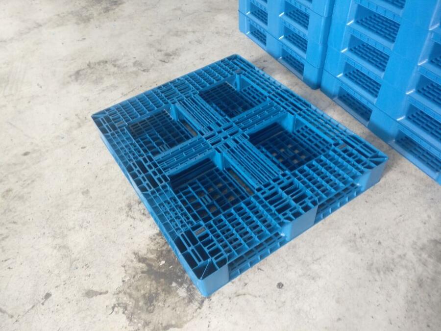 塑料托盘上承载的货物成千上万种,纯塑料托盘表面比较光滑,塑料材质本身不防滑,如果上面所装载的货物也很光滑,那么很容易出现货物洒落情况的出现,所以我们公司的托盘在出厂时一般装有橡胶防滑垫,生产时和托盘融为一体非常牢固,对于货物的防滑和固定起到了很大作用,同时在进插口托盘下面也配有防滑垫,也就是叉车腿和塑料托盘接触的部分,特别是在一些下完雨或使用环境潮湿的环境下,和金属叉车腿之间极易打滑,加入橡胶防滑垫后可有效避免托盘从叉车腿上滑落情况的出现。