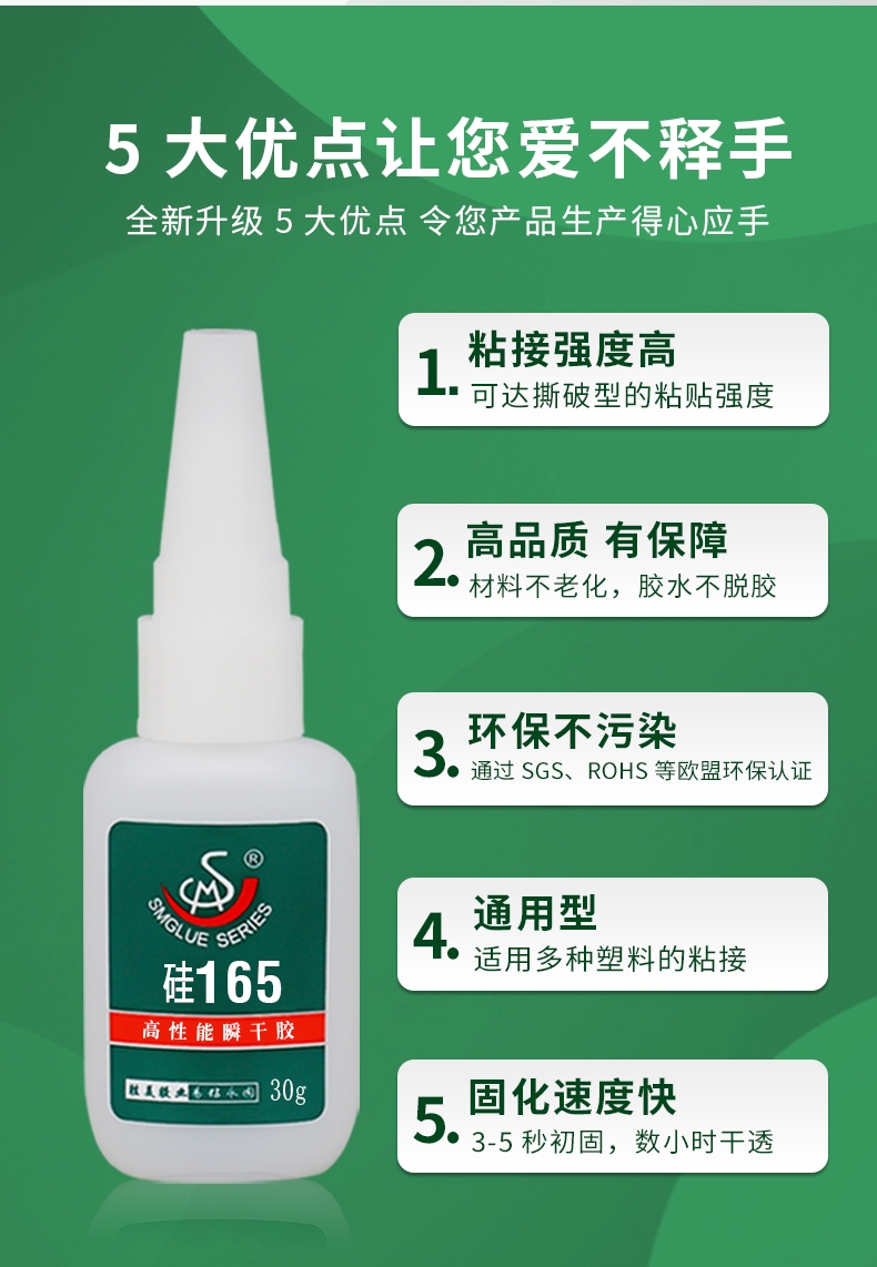 胜美SM-硅165 TPR瞬干胶 速干 粘得牢 硅胶粘PP PE塑料粘接胶水