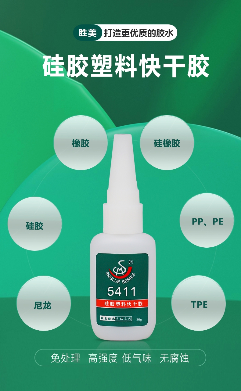 SM-5411硅胶粘橡胶瞬干胶水 尼龙TPE免处理高强度胶水