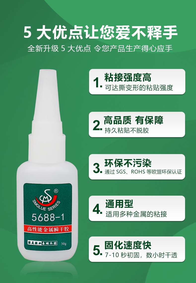 胜美牌5688-1金属瞬干胶 不锈钢铝合金铝材磁铁低白化快干胶水
