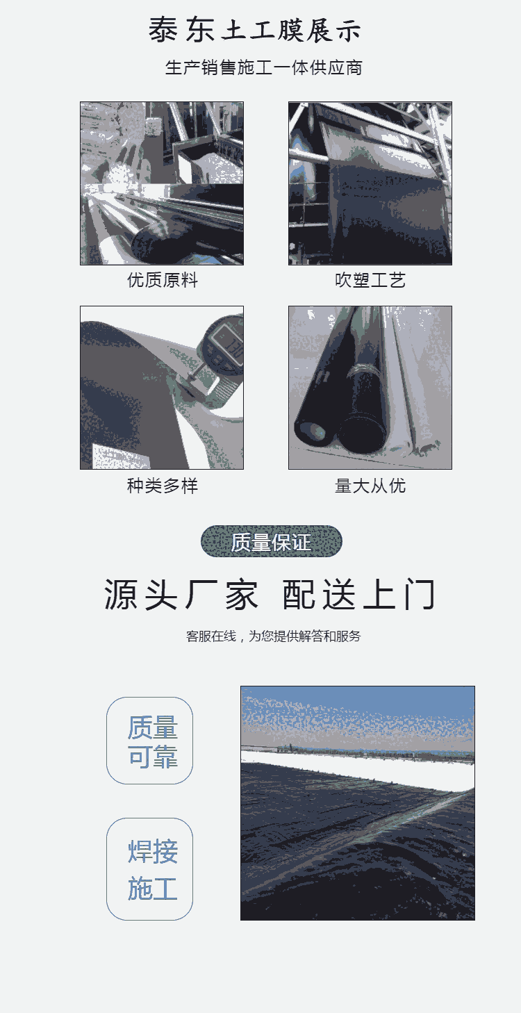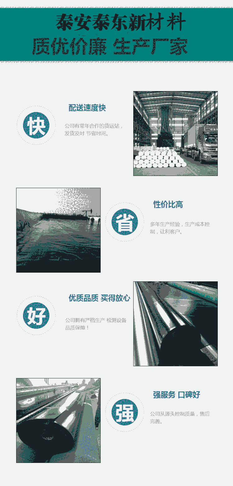 济宁金乡县防渗土工布厂家泰东现货供应(一.三.四.七五三八.三二六零)【复合防水板,防水片材强度生产场地,它≥0.8mm厚度土工膜称为防水板,它是通常使用<0.8毫米的厚度,称为土工膜,分为均匀防水板和复合防水板。复合防水板是通过基于诸如热复合的殊将夹套式层附接到防水板而形成的复合地面材料。-[2017/11/24]如何分辨土工膜厂家的产品[2019/3/26]复合土工膜应用于人工湖防渗工程[2017/9/9]泰东土工---节水防渗护水利工程保水力资源[2017/11/24]HDPE土工膜的厚度范围是多少[2017/5/31]土工膜是新型环保产品在为保护地球保护。】