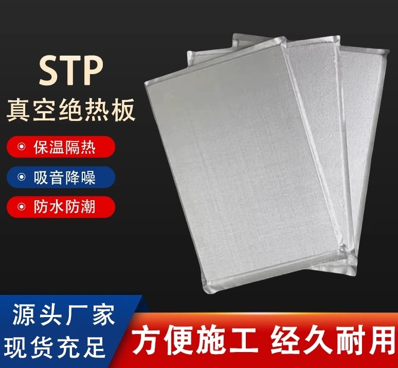 华美无机纤维芯材与高强度复合阻气膜通过抽真空封装技术制成的保温板STP超薄绝热保温板(Super Thin Panel,简称STP板)是一种基于无机纤维芯材与高强度复合阻气膜经抽真空封装技术制成的建筑保温材料,属于A级防火产品,主要应用于建筑外墙及既有建筑节能改造领域 其核心工艺采用真空封装技术,通过芯材支撑骨架与阻气膜复合结构实现高效隔热,防火吸音特点。该材料由纳米无机空心粉体及无机纤维混合芯材、铝箔复合阻气膜及金属基吸气剂构成,通过阻断热对流(真空层)、降低热传导(芯材导热系数0.04W/(m·K))和反射热辐射(铝箔层)三重机制实现保温,导热系数≤0.008W/(m·K),内部真空度≤10Pa。具备轻质(≤15kg/m2)、超薄(传统材料厚度的1/3-1/8防火等级高及施工便捷等特点,可满足65%建筑节能标准要求 [2]。使用寿命设计为60年,关键指标包括压缩强度≥150kPa、抗拉强度≥0.10MPa。