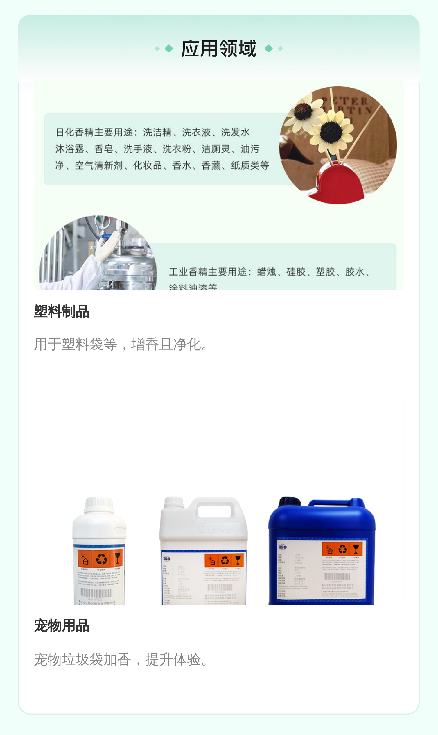 用途范围 | 塑料袋、宠物垃圾袋、干燥剂、香纸片、鞋垫等产品加香 | ||