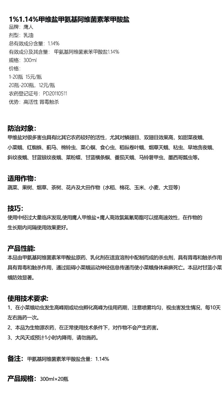 有效成分及其含量 | 甲氨基阿维菌素苯甲酸盐1.14 | ||