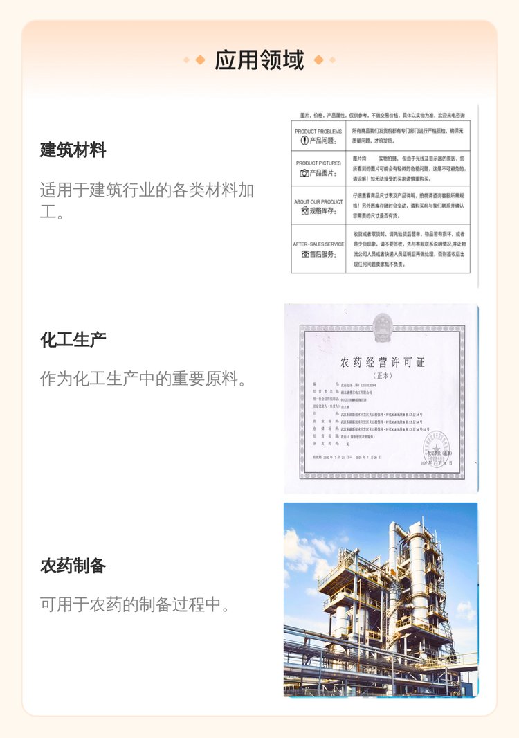 用途范围 | 适用于建筑行业化工原料 | ||