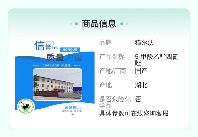 产品名称 | 5-甲酸乙酯四氮唑 | ||