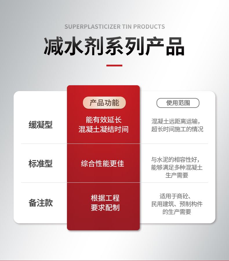 用途 | 减少混凝土的用水量、增加混凝土强度 | ||