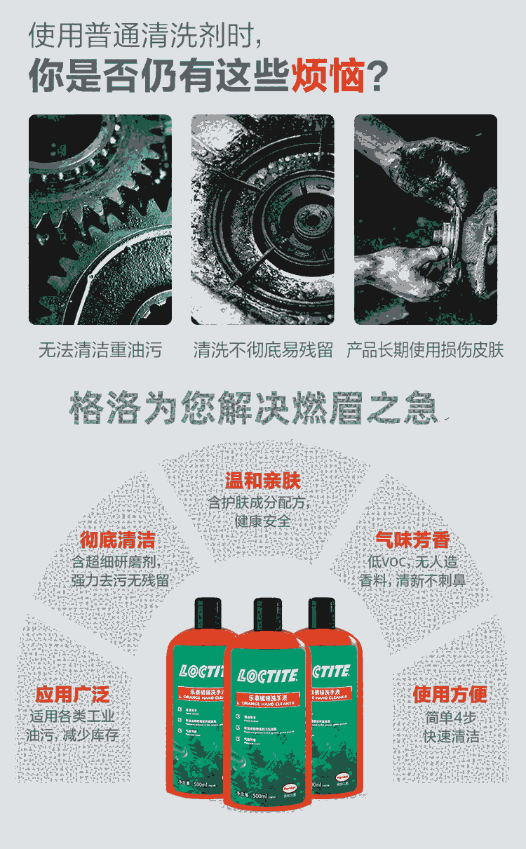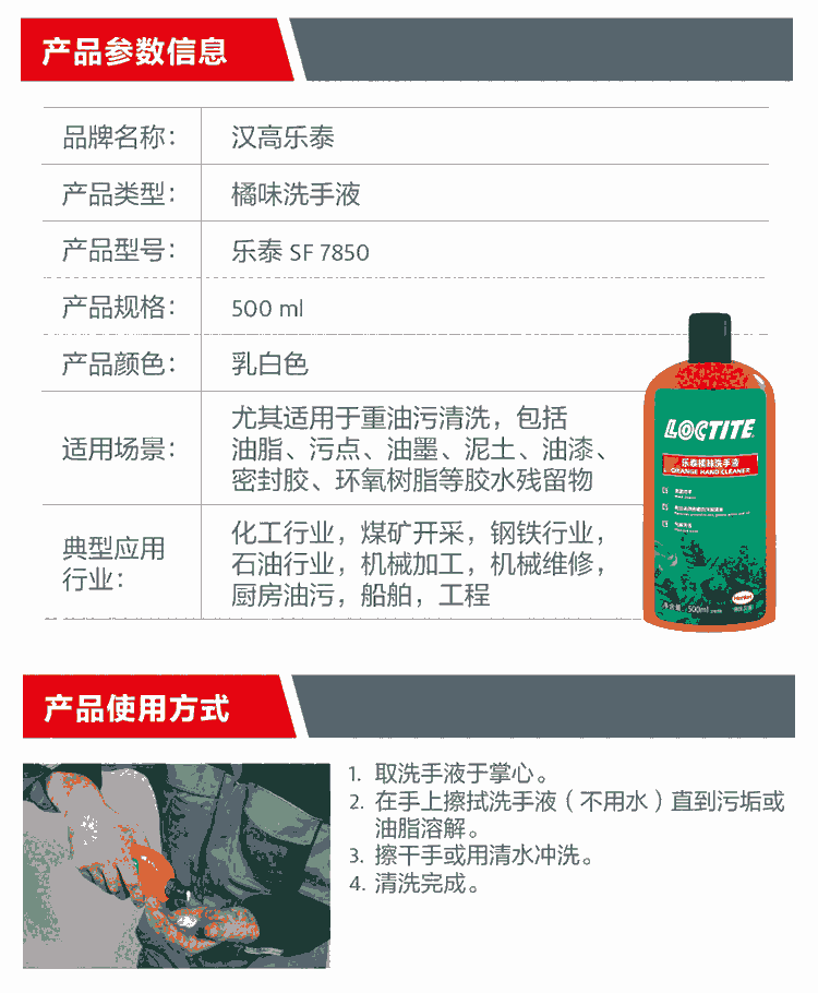 浙江乐泰LoctiteSF7850工业洗手液机修汽修去油污低VOC可干洗免水洗